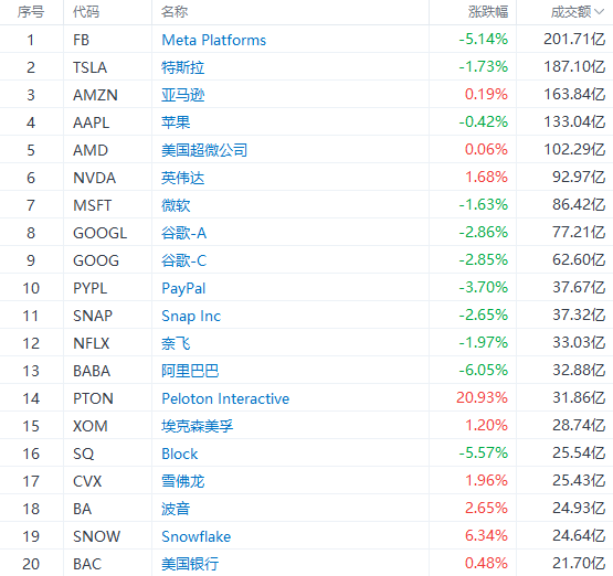 昨日美股成交额TOP20