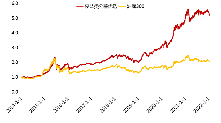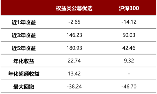 权益类公募优选长期业绩表现(%,截至2022/1/21)
