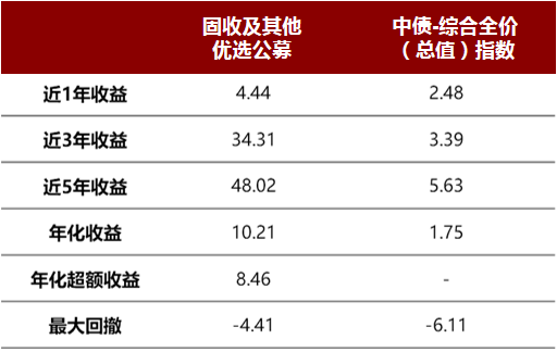 固收及其他公募优选产品长期绝对收益稳健,累计收益大幅跑赢债券指数。固收类公募优选基金经理采取了积极的久期与杠杆管理,权益持仓维持均衡,规模业绩稳步增长。组合长期跑赢债券指数及同类产品,获取了较高的风险调整收益,符合稳健型的投资需求。
