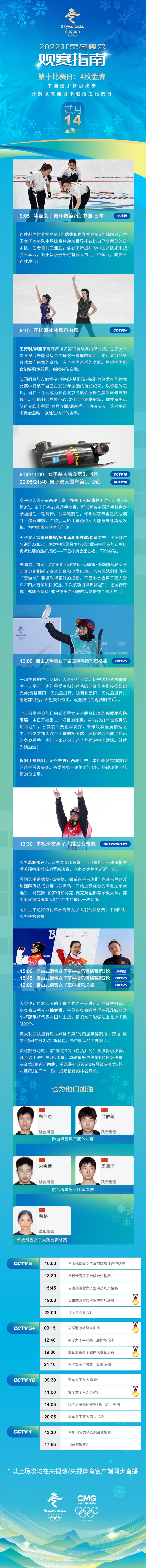 2月14日观赛指南:中国选手多点出击 开赛以来最目不暇给比赛日