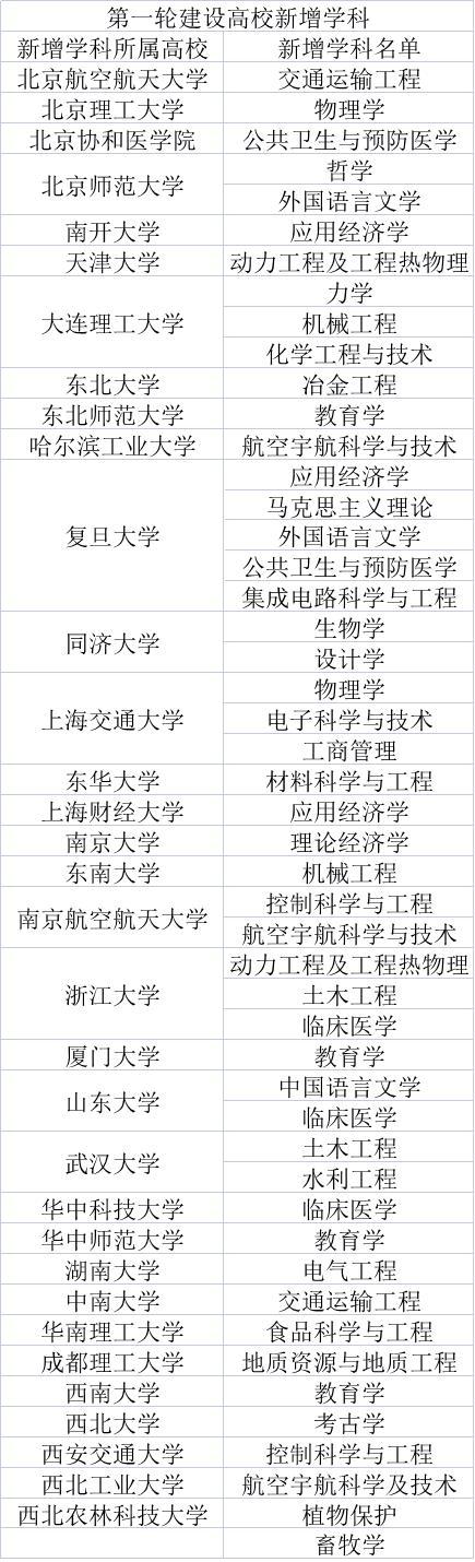 (第一轮“双一流”建设高校新增学科名单 来源:教育部网站)