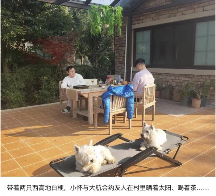 住了六年,小怀和大航已经逐渐在村里村外形成了一个朋友圈,相当于一个相对固定的熟人小社会。当然,圈子核心还是庄园里的邻居,比如知名作家、编剧范哥(他俩习惯这样称呼),私营企业主刘哥,前新闻媒体高管、现自媒体创业者等等。而像乡村青年李毅这些本地人,也在平常的走访中逐渐融进他们的墅民圈,经常会带着女友参加他们的“村会”,丰富了彼此的休闲与生活。