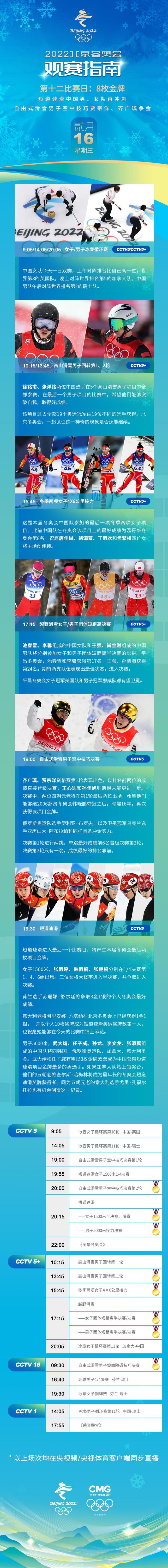 2月16日,2022北京冬奥会第十二个比赛日,将产生8枚金牌,自由式滑雪男子空中技巧贾宗洋、齐广璞争金。