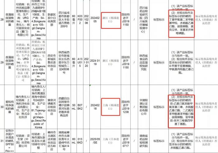 在国家药监局公布的50批次不符合规定化妆品信息中,包含了多款进口产品。