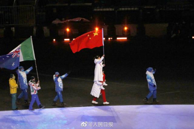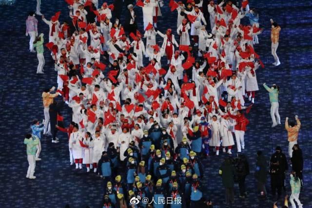 中国冰雪,骄傲!五星红旗被运动员高高举起,中国代表团入场!