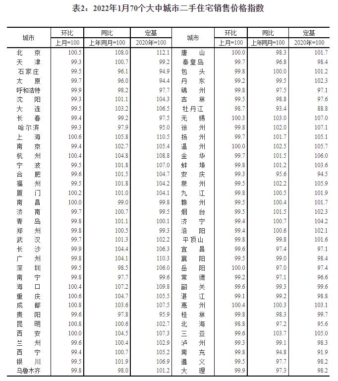 2022年1月份,70个大中城市新建商品住宅和二手住宅销售价格环比降势减弱,同比涨幅总体回落。