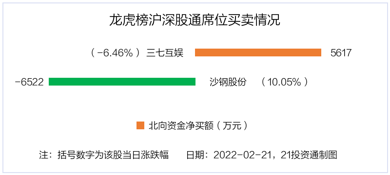 2月21日,北向资金参与龙虎榜中的个股共有2只,合计净卖出904.92万元。其中深股通净买入1 股,净卖出1 股,合计净卖出904.92万元。