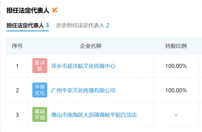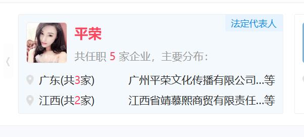 目前平荣共关联5家企业,其担任包括萍乡市星沐航文化传媒中心等三家公司法定代表人职务。