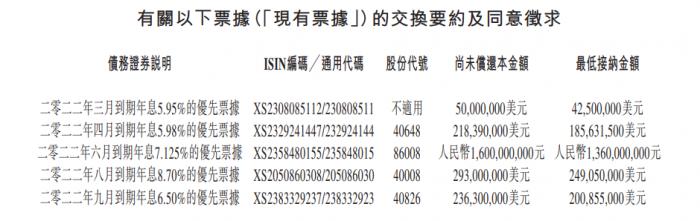 上述展期债券未兑付本金分别为5000万美元、2.18亿美元、16亿元人民币、2.93亿美元及2.36亿美元,合计约66亿元人民币。