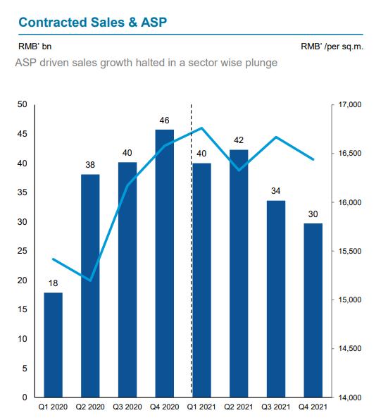 图为正荣地产的合同销售额和平均售价走势;图表来自正荣地产2022年2月投资者会议PPT