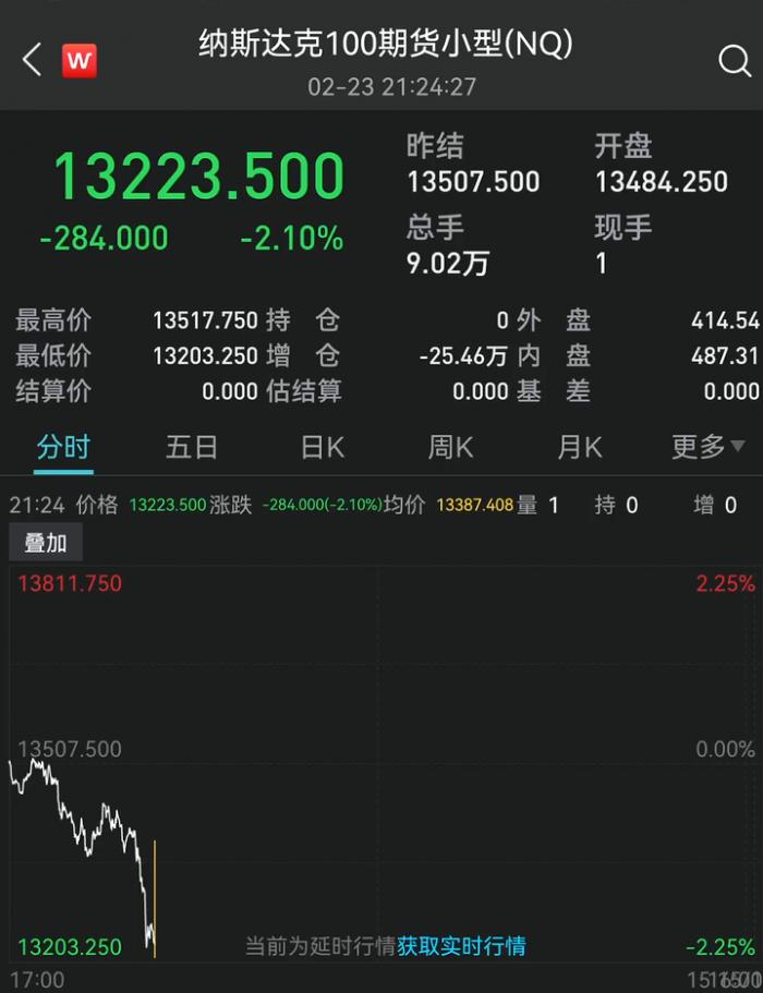 美股三大期指续跌,标普500指数期货跌逾2%,纳指期货跌2.64%,道指期货跌2%。