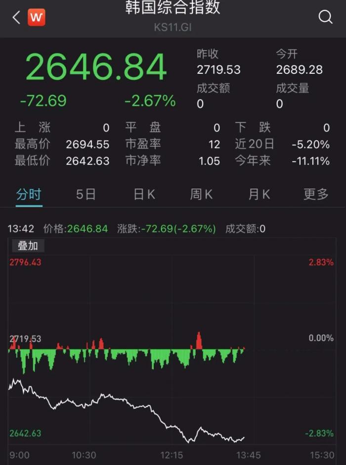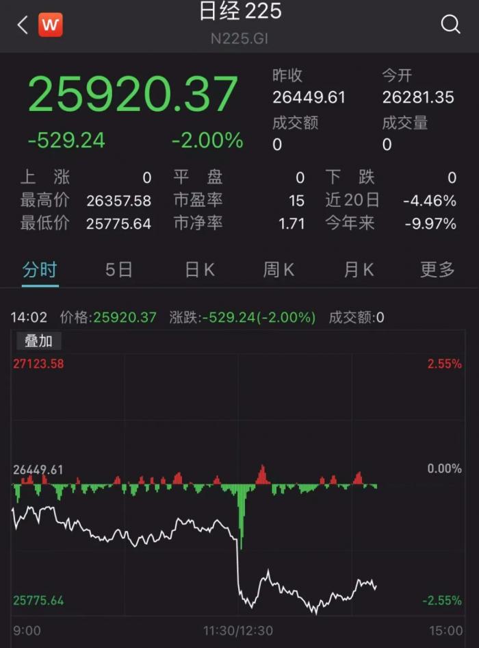 临近午盘,日本、韩国股市均出现一波明显跳水。