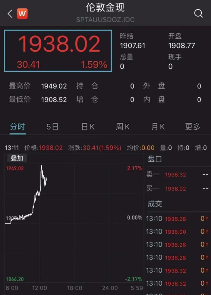 现货黄金更是从1910美元一度直拉1930美元/盎司关口,逾一年来新。