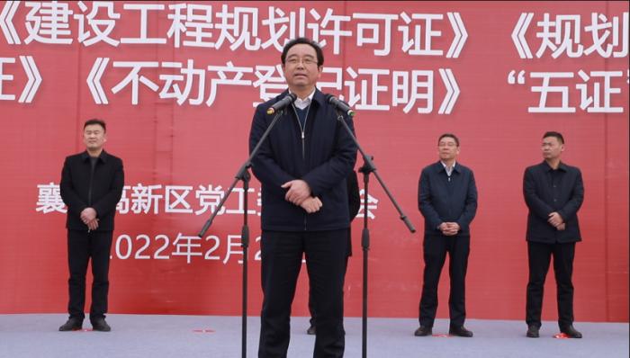 2月27日上午,襄阳高新区刘集办事处郑岗喜气洋洋,比亚迪襄阳产业园项目“五证同发”仪式举行,标志着比亚迪襄阳产业园具备了开工条件。从1月24日项目签约到2月27日“五证同发”,1300多亩复杂的丘陵土地变成一马平川,仅花了33天时间,把不可能变成了可能,创造了一系列奇迹,诞生了新的“襄阳速度”和“高新标杆”。