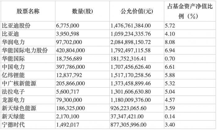 前海开源公用事业的前十大重仓股也都涉及双碳领域,包括华润电力、华能国际电力股份、中国电力、中广核新能源、龙源电力等公用事业股,以及亿纬锂能、比亚迪、新天绿色能源等新能源股。