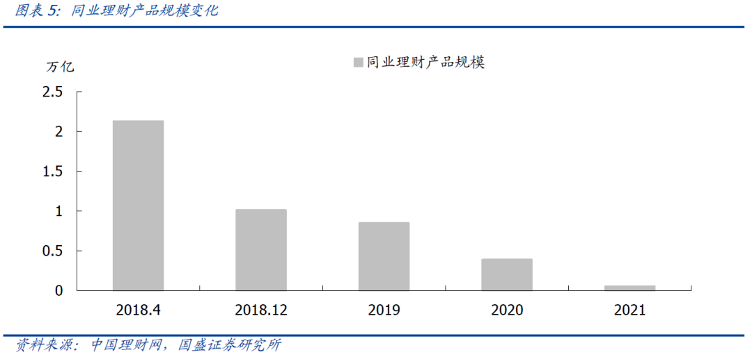 同业理财大幅减少,多层嵌套的违规投资情况基本清除,池化运作等高风险业务得到整治清理,资金空转得到根本扭转。2021年底同业理财降至541亿,较资管新规发布前下降97.52%。