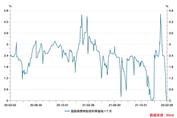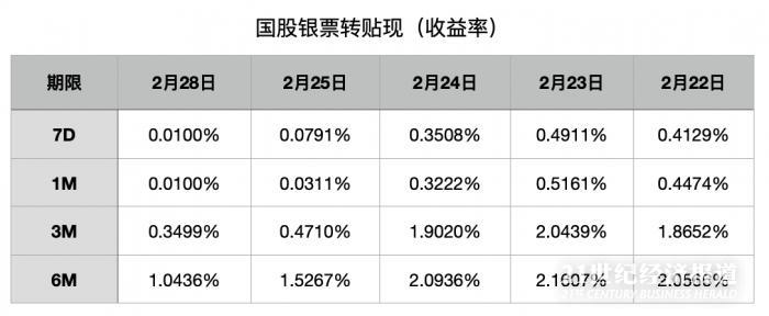 上海票据交易所网站显示,2月28日,国股银票转贴现7天期、1月期收益率均为0.0100%,均再创历史新低,上一次类似走势发生在去年12月下旬,一度引发市场对当月信贷数据走弱的预期。