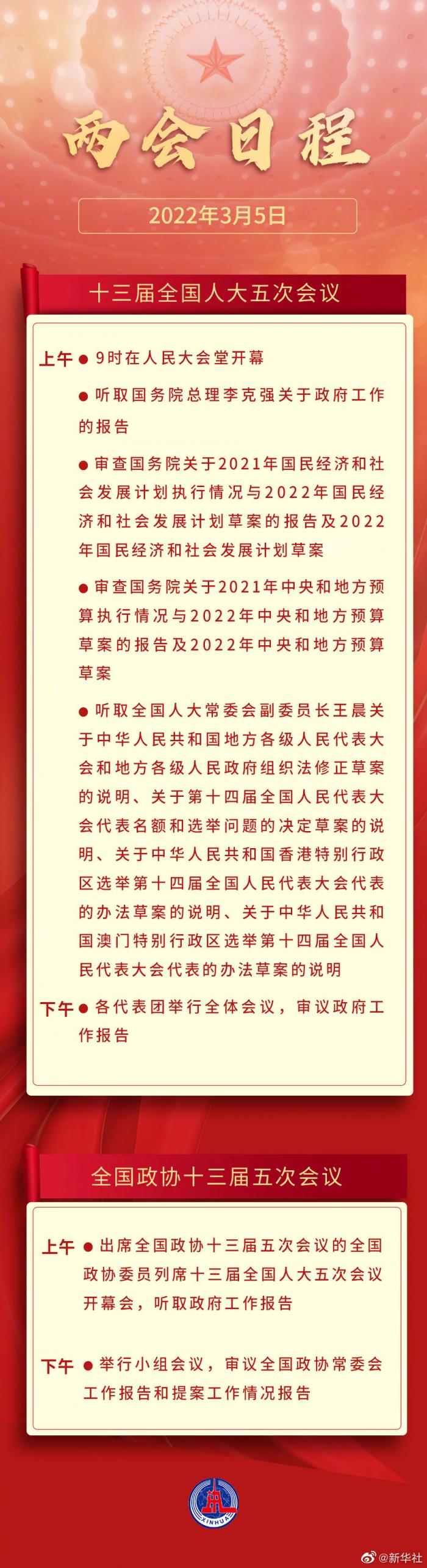 十三届全国人大五次会议于3月5日在北京召开。全国政协十三届五次会议于3月4日在北京召开。