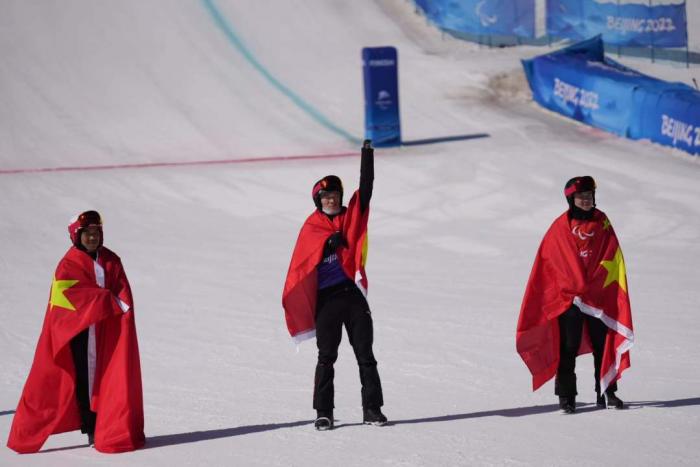 刚刚结束的北京冬残奥会残奥单板滑雪男子障碍追逐-UL级比赛中,中国选手纪立家获得冠军,王鹏耀、朱永钢分别获得第二、三名,张义琦获得第四名。
