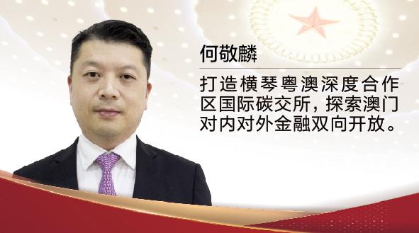 何敬麟:主要涉及横琴深合区的建设和穗澳合作,例如建议在横琴深合区建设低碳发展先行示范区和国家级国际碳交易所,发展科技研发和高端制造产业、中医药等澳门品牌工业以及文旅会展商贸和现代金融产业等。