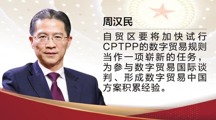 如何推进数字贸易发展?全国政协常委、民建中央副主席、上海市政协副主席周汉民近日在接受21世纪经济报道记者专访时建议,在研究数字贸易战略布局的关键时刻,承担国家使命的自贸区要将加快试行CPTPP的数字贸易规则当作一项崭新的任务,积极打造数字贸易示范区,为参与数字贸易国际谈判、形成数字贸易中国方案积累经验。