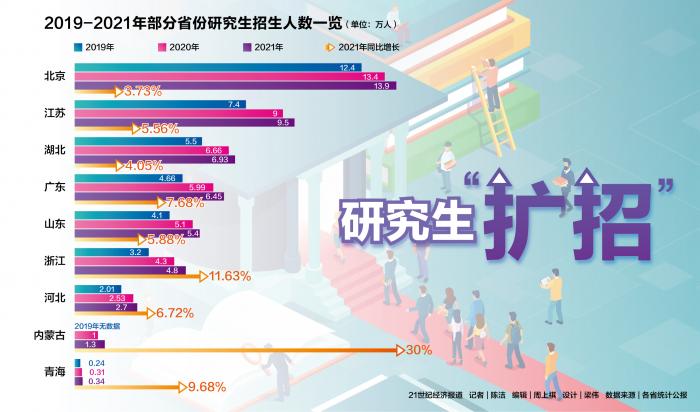 多省区市2021年高校招生:研究生数量明显提升,内蒙古、浙江同比超过10%