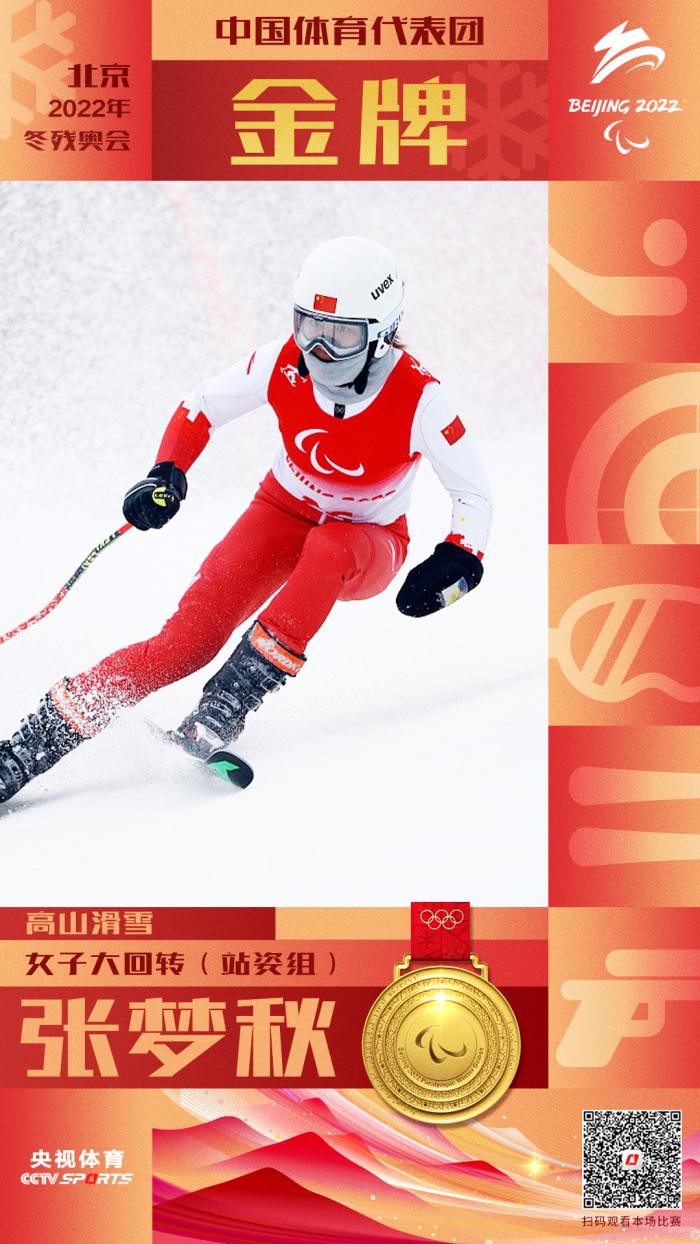 在北京冬残奥会高山滑雪女子大回转(站姿组)比赛中,张梦秋夺得金牌。