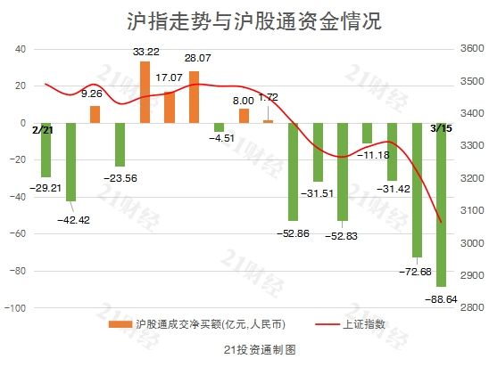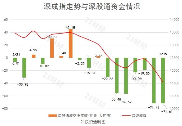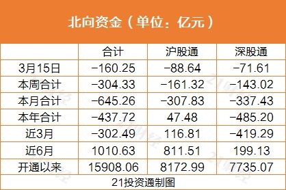据21投资通(微信号ID:touzit21)智能监测,北向资金延续大幅净流出,其中沪股通净卖出88.64亿元,深股通净卖出71.61亿元,全天合计净卖出160亿元,再创年内单日流出净额新高,也是连续两日流出逾百亿。