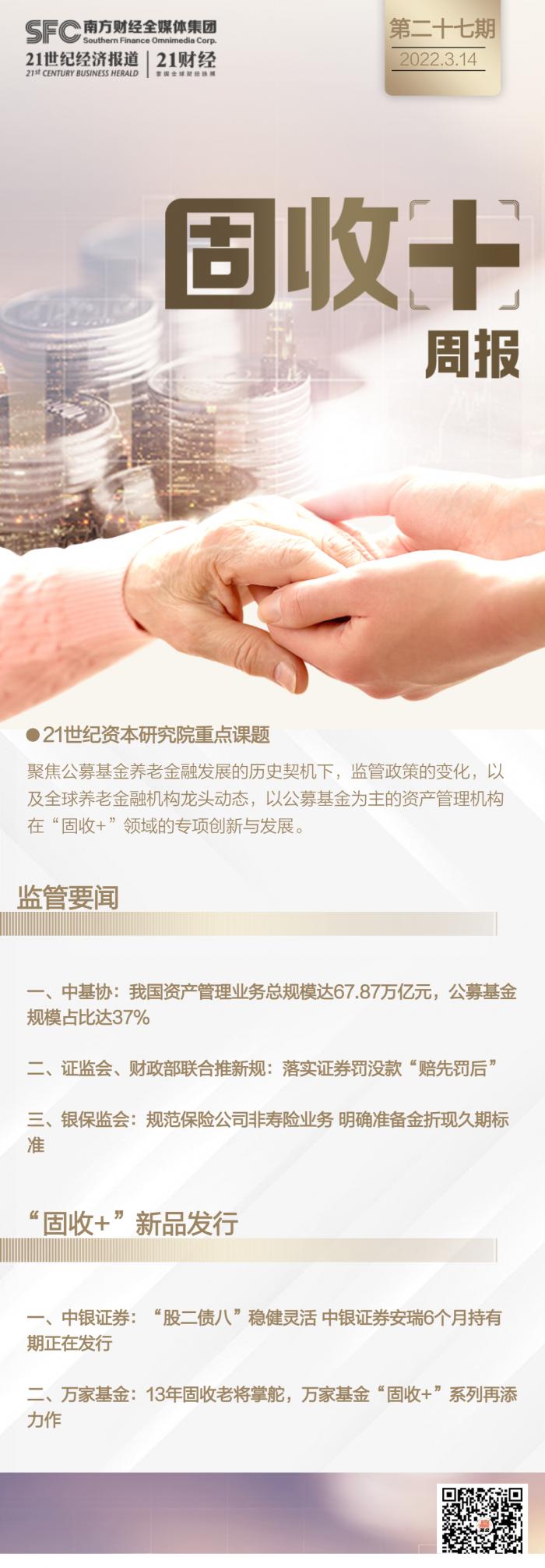 一、中基协:我国资产管理业务总规模达67.87万亿元,公募基金规模占比达37%