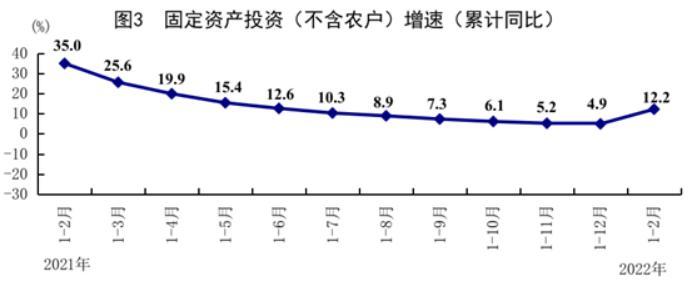 1-2月份,全国固定资产投资同比增长12.2%,比2021年两年平均增速加快8.3个百分点。其中,制造业投资和基础设施投资发力,分别增长20.9%和8.1%,回升明显。
