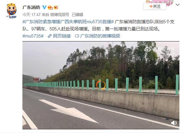 广东消防紧急增援广西失事航班mu5735救援
