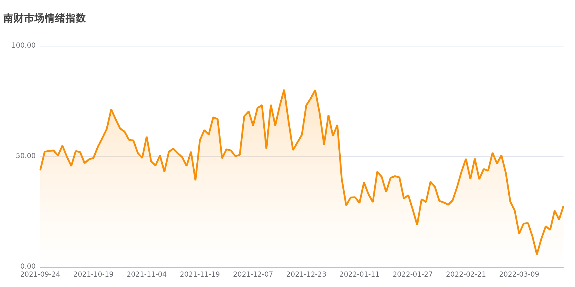 今日南财市场情绪指数为27.6,市场投资热度明显提升