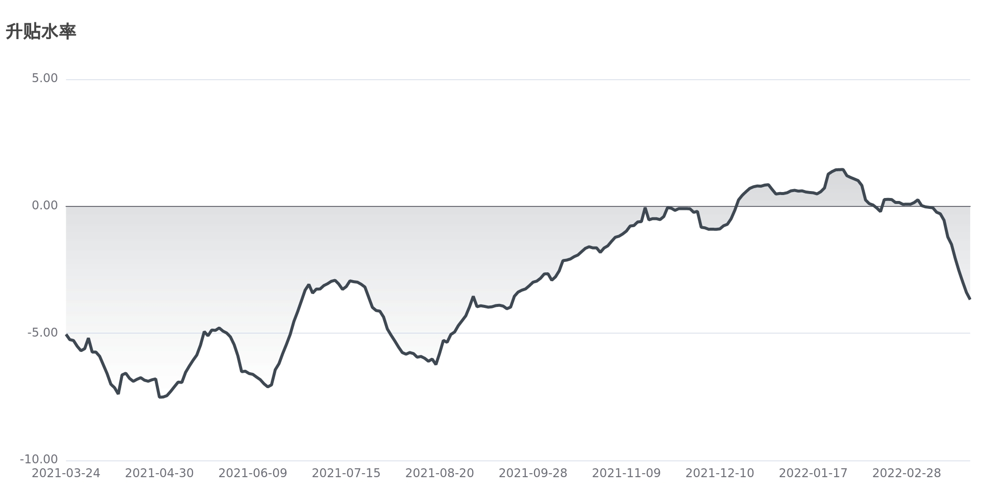 今日该指标值为-3.67%,目前该指标处于近一年中立区间,说明投资者对A股持中立情绪。反映期货市场投资者对市场的看法,该指标越高说明投资者认为当前市场较强,越低则说明认为市场相对较弱,因而与上证指数正相关。