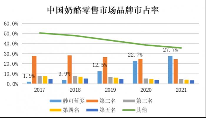 (中国奶酪零售市场品牌市场占有率,数据来源:Euromonitor)