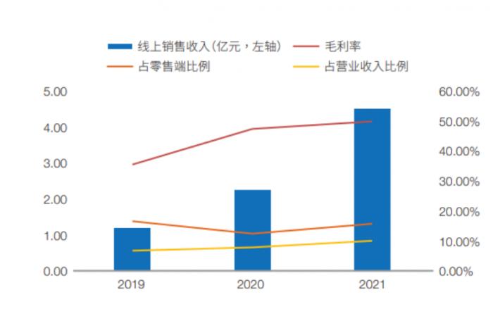 (妙可蓝多2019-2021年线上销售收入占比,数据来源:上市公司公告)