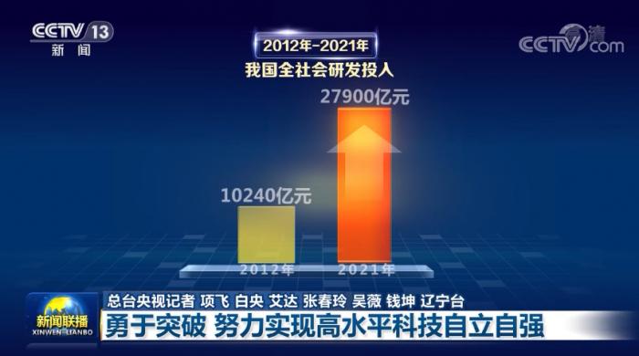 核心技术自主创新能力的提升也有赖于国家投入的增加。党的十八大以来,我国全社会研发投入从2012年10240亿元增长到2021年27900亿元,其中基础研究投入从498亿元增长到超过1600亿元,是十年前的3.4倍。我国投入运行和在建的大科学装置从屈指可数增加到50多个,基础研究和战略前沿突破能力大幅提升,为伟大变革、筑梦强国奠定新基。