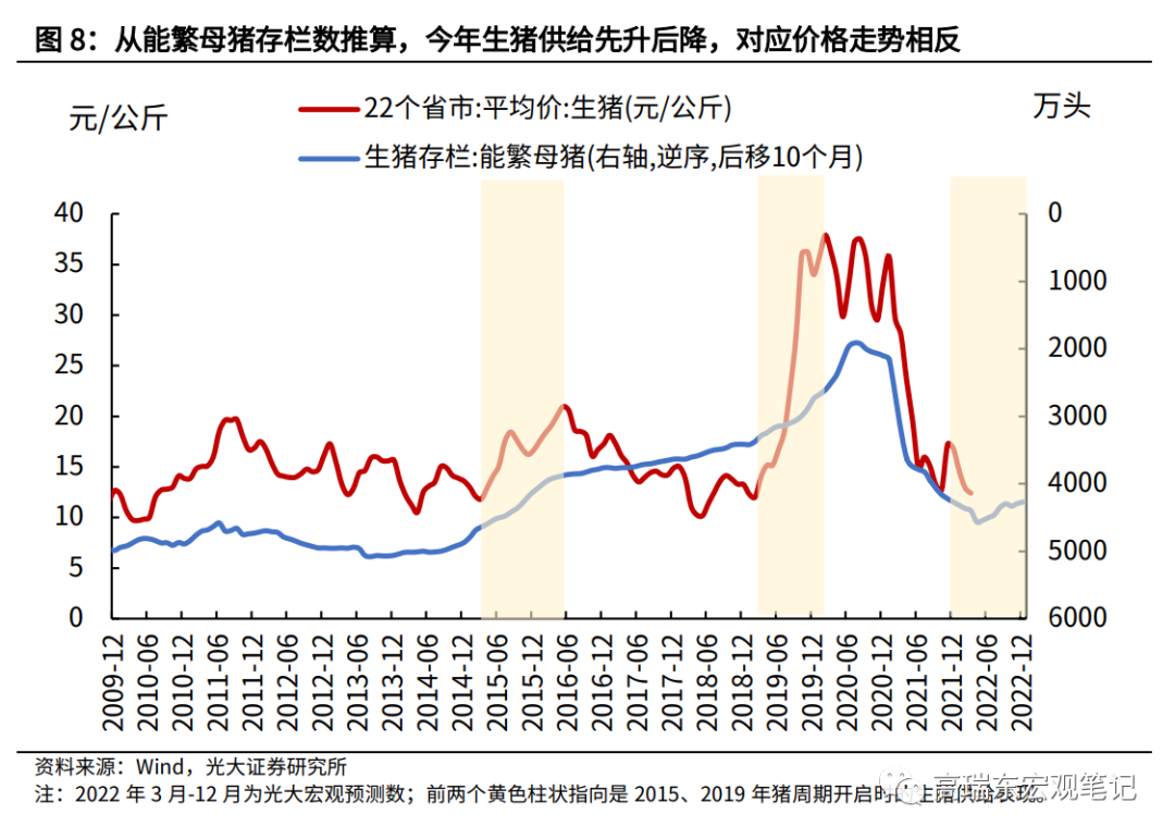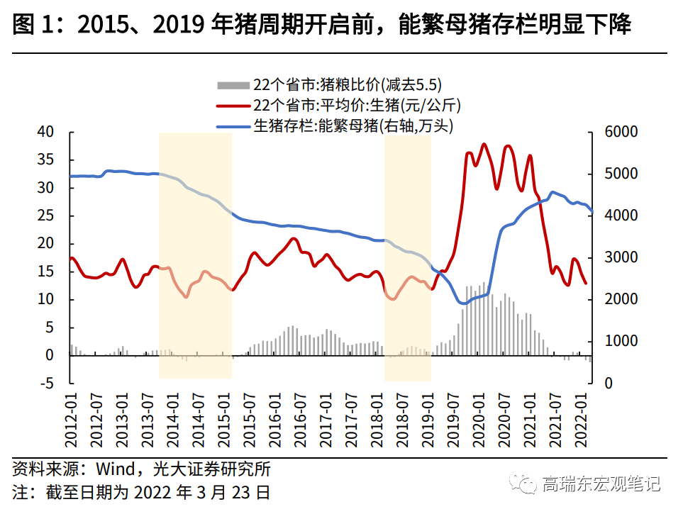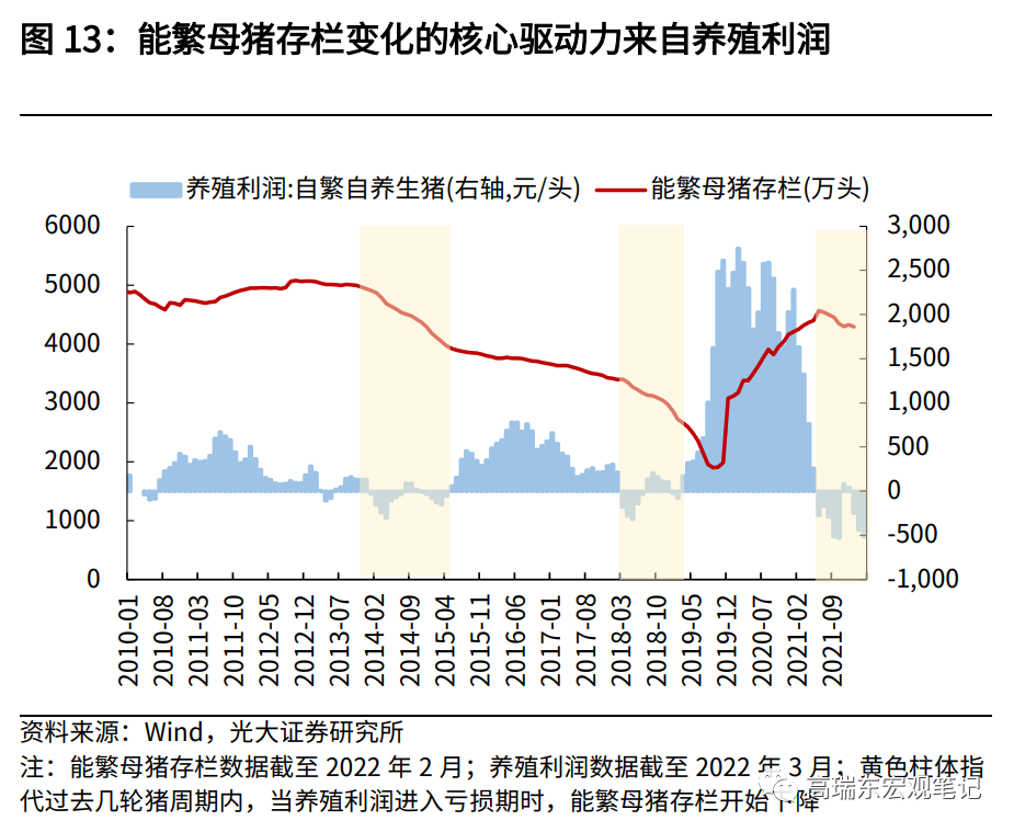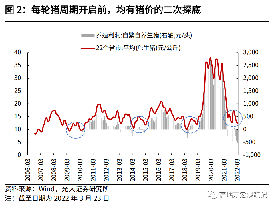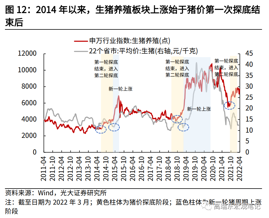 一是,前期产能去化明显,最近两轮猪周期开启前,产能去化幅度基本在15%以上。一般在养殖利润连续亏损的12个月-14个月后,猪价开始持续反弹。