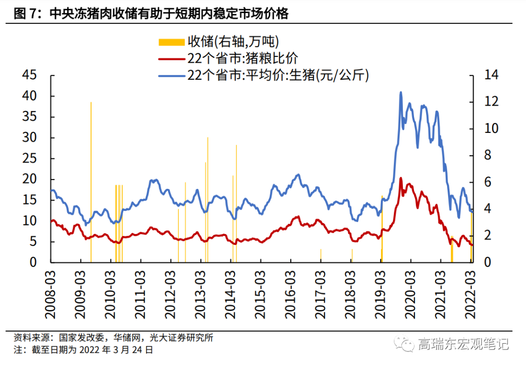 随着猪粮比价跌破5:1,猪肉收储工作陆续开启,猪价跌幅有望收敛,进入筑底阶段。2月8日,国家发展改革委称,将视情启动猪肉储备收储工作。此后,四川、湖北、江西等地陆续启动收储工作,3月以来,中央已经进行年内第三批冻猪肉收储,其中,3月3日、3月10日已启动收储7.8万吨。