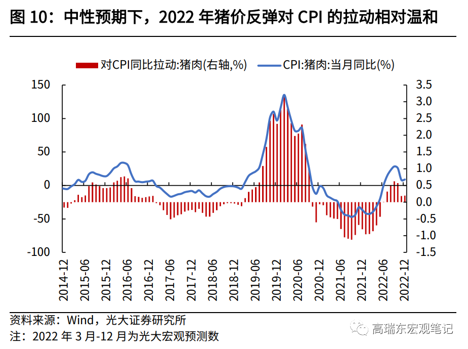 年内猪价反弹对CPI影响可控。随着二季度后猪价开启上涨,对CPI的拖累将转为拉动,最大可拉动CPI单月同比上涨0.5-0.6个百分点(8-10月),或将导致9月CPI同比接近3%,但全年来看,下半年猪价反弹或仅拉动CPI中枢上升0.2个百分点,对通胀影响相对温和。