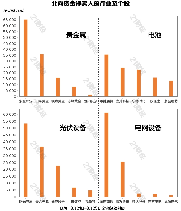 据21投资通(微信号ID:touzit21)智能监测,3月21日-3月25日,北向资金连续5日净卖出,累计净卖出127.78亿元。其中沪股通累计净卖出63.72亿元,深股通累计净卖出64.07亿元。