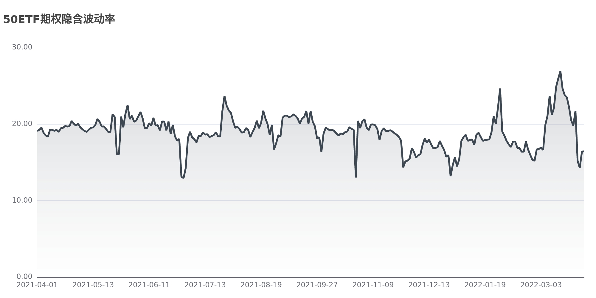 今日该指标值为16.45,目前该指标处于近一年较低区间,说明投资者认为未来市场波动处于较低水平。50ETF期权波动率(原中国波指iVIX,也称作恐慌指数),指数与上证指数存在负相关性,但不绝对。指数点位越高,代表投资者预期后市波动程度愈加激烈;指数点位越低,代表预期后市的走势愈加平稳。VIX在剧烈波动处有聚集的特征,而这些波动聚集处通常是在市场剧烈波动,或指数的低点和高位处。那么,在股指高位处的 VIX 聚拢高企意味着市场风险的集中;而股指快速下跌处的 VIX 高企意味着市场风险的释放。若VIX指数在股市快速下跌时持续的高企并突破极值,这可能预示市场的重大转折——风险已经释放到极致,股市将开始企稳并上扬。