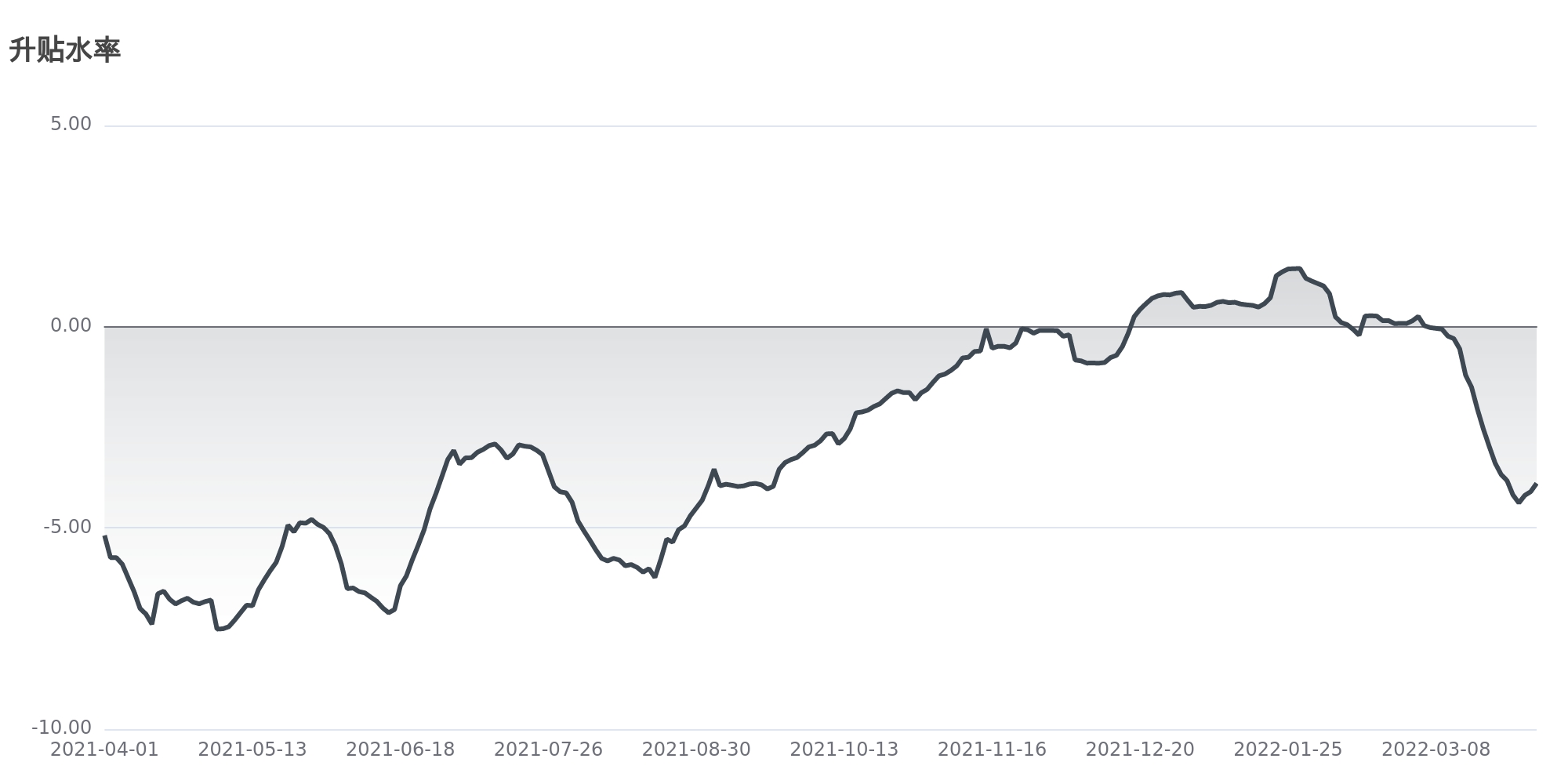 今日该指标值为-3.89%,目前该指标处于近一年中立区间,说明投资者对A股持中立情绪。反映期货市场投资者对市场的看法,该指标越高说明投资者认为当前市场较强,越低则说明认为市场相对较弱,因而与上证指数正相关。