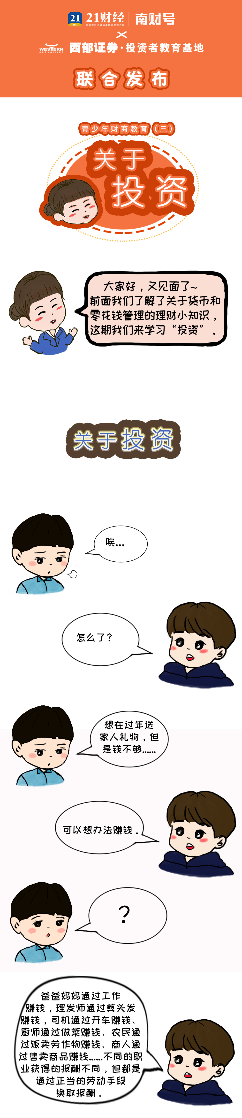 为此,南财号联合西部证券投教基地发布了《漫话财商启蒙》系列漫画,旨在帮助广大学生树立正确的投资风险意识、培养良好的理财能力。我们希望能够启蒙更多的读者具备理财理念,拥有从容美好的财富人生,一起为国家经济做出积极贡献。