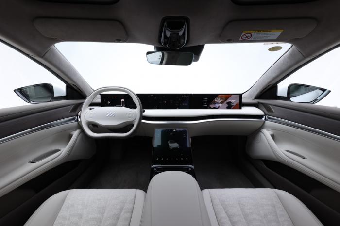 一上来,天马山的400米直线跑道,就考验了智己L7的加速能力。电门到底时,智己L7电机425kW的最大马力,725Nm的最大扭矩瞬间迸发,驾驶员被牢牢按在座椅上。