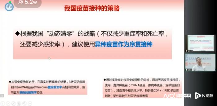 4月8日,钟南山院士为南开大学进行《科学指导抗疫,勇攀医学高峰》远程授课,建议使用异种疫苗作为序贯接种。