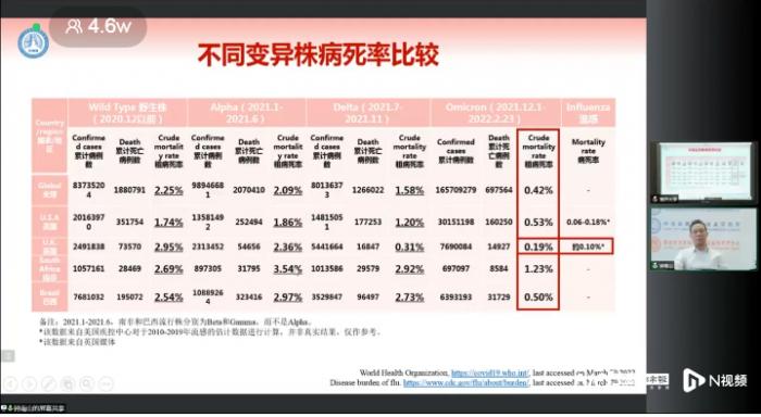 钟南山还列出了美国、南非、巴西等国的新冠相关数据,提出,“从全球的平均数据来看,新冠的病死率还是远远超过流感的,从这个角度来看,说‘奥密克戎造成的死亡率已经接近或者低于流感’不完全真实,在全球的角度还站不住脚”。