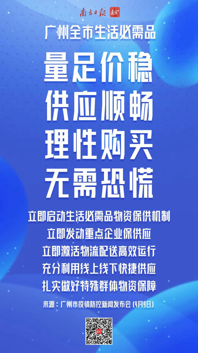 接下来,广州还会不断调整、优化、升级保障措施,提高工作质量效益。在这里,需要再次说明的是,全市生活必需品供应,量足价稳。我们也呼吁广大市民朋友,理性购买,无需恐慌。