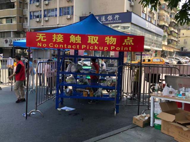 此外,管控区内还设置了无接触取物点。管控区内居民网上下单点的外卖和快递可以送到无接触取物点。