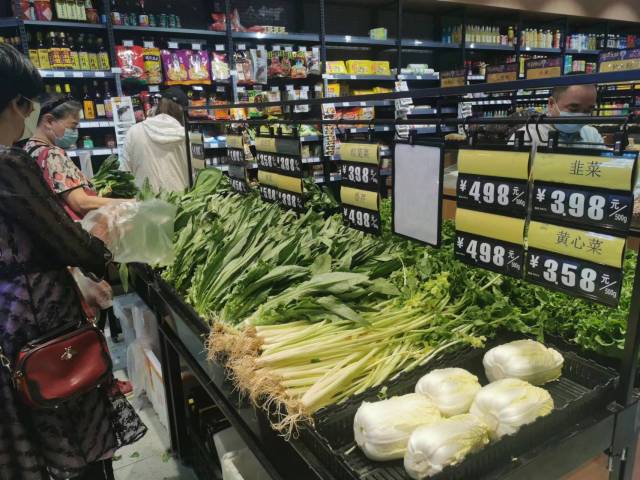 民生食品的价格变化不大,叶菜类4—5元/斤,生鲜五花猪肉一份12元左右。