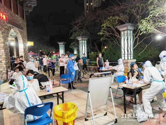 图:广州产投集团志愿者支援万科云山核酸检测现场。(广州产投集团供图)